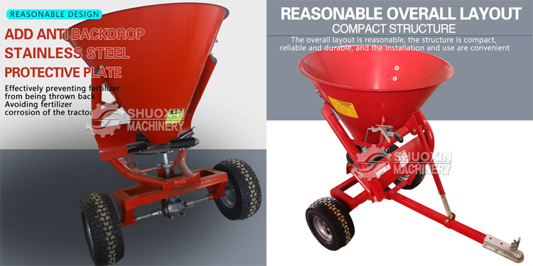 Med sin koniske strukturdesign og tråkket skrueblad, kan effektivt håndtere forskjellige typer materialer som granulær gjødsel, organisk gjødsel og husdyrgjødsel. Det kan også spre avisingsmidler. Dens enhetlighet av knusing og glatthet ved utladning er egnet for egenskapene til forskjellige gjødsel. Kombinert med justerbare gjødselutladningsporter og rotasjonshastigheten til spredningsskiven, forbedrer det dens kompatibilitet med materialer i forskjellige partikkelstørrelser og fuktighetsinnhold.