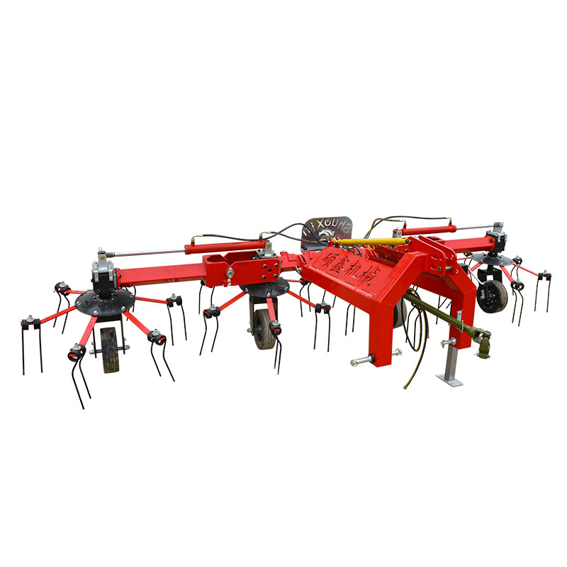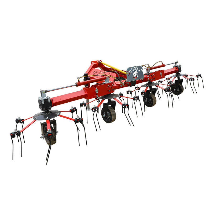 The Rake er en fôrhøstingsmaskin som integrerer beitemarkene. Etter at beite er høstet, for å nå baleforholdene så snart som mulig, må beite være solopplyst med en spreder. Sprederen kan spre beite i feltet jevnt, noe som letter den raske fordampningen av vann og letter skjæring av beite i ballene eller tørr før ensilasje. Når fuktigheten på beite kan nå en tilstand der den kan tørkes, samles avlingene i en låve med en rake og knuses i strimler som forberedelse til å binde operasjoner. Når raken fungerer, bruk fjærtennene til å bevege avlingen forsiktig for å samle eller spre solen, unngå blandet rusk eller stein i avlingen for å forbedre kvaliteten på beite eller grønn fôr.