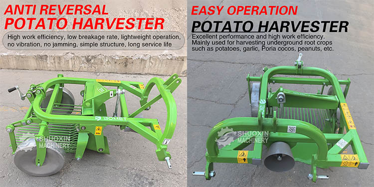 Den integrerte graveanordningen sikrer nøyaktigheten av gravedybden, mens den flytende kutteren er designet for å effektivt kutte ugress og redusere gravemotstanden. Den egner seg godt for små traktorer og kan skånsomt trekke poteter opp av jorda uten å forårsake skade. Den er spesielt egnet for småskaladyrkere.